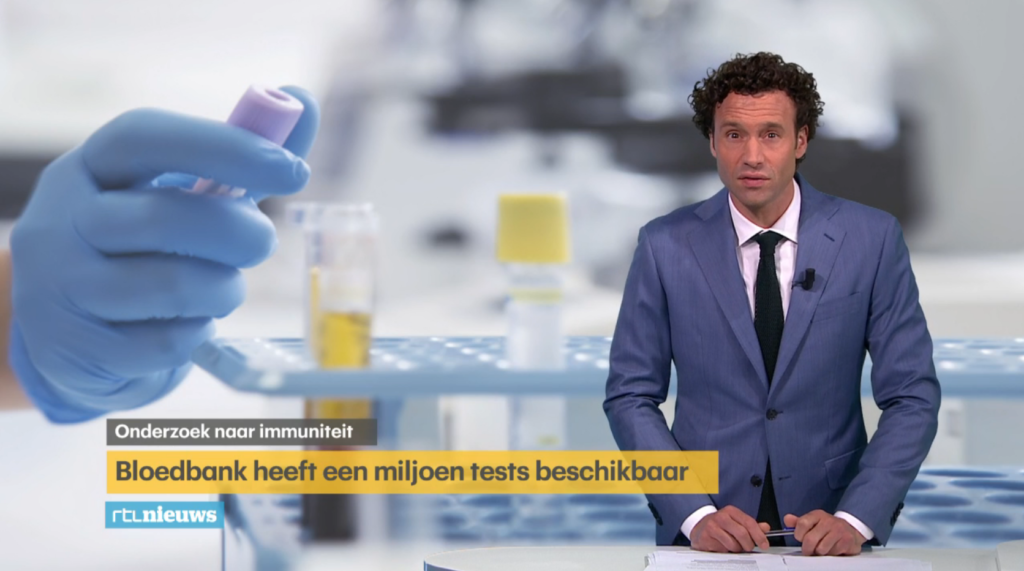 Minister Hugo de Jonge of Health, Welfare and Sport (VWS) and special coronavirus envoy Mr. Feike Sijbesma presented the test kits on May 5th to Prof. Dr. Rene van Lier, Vice Chairman of the Executive Board and Research Director of Sanquin blood bank.